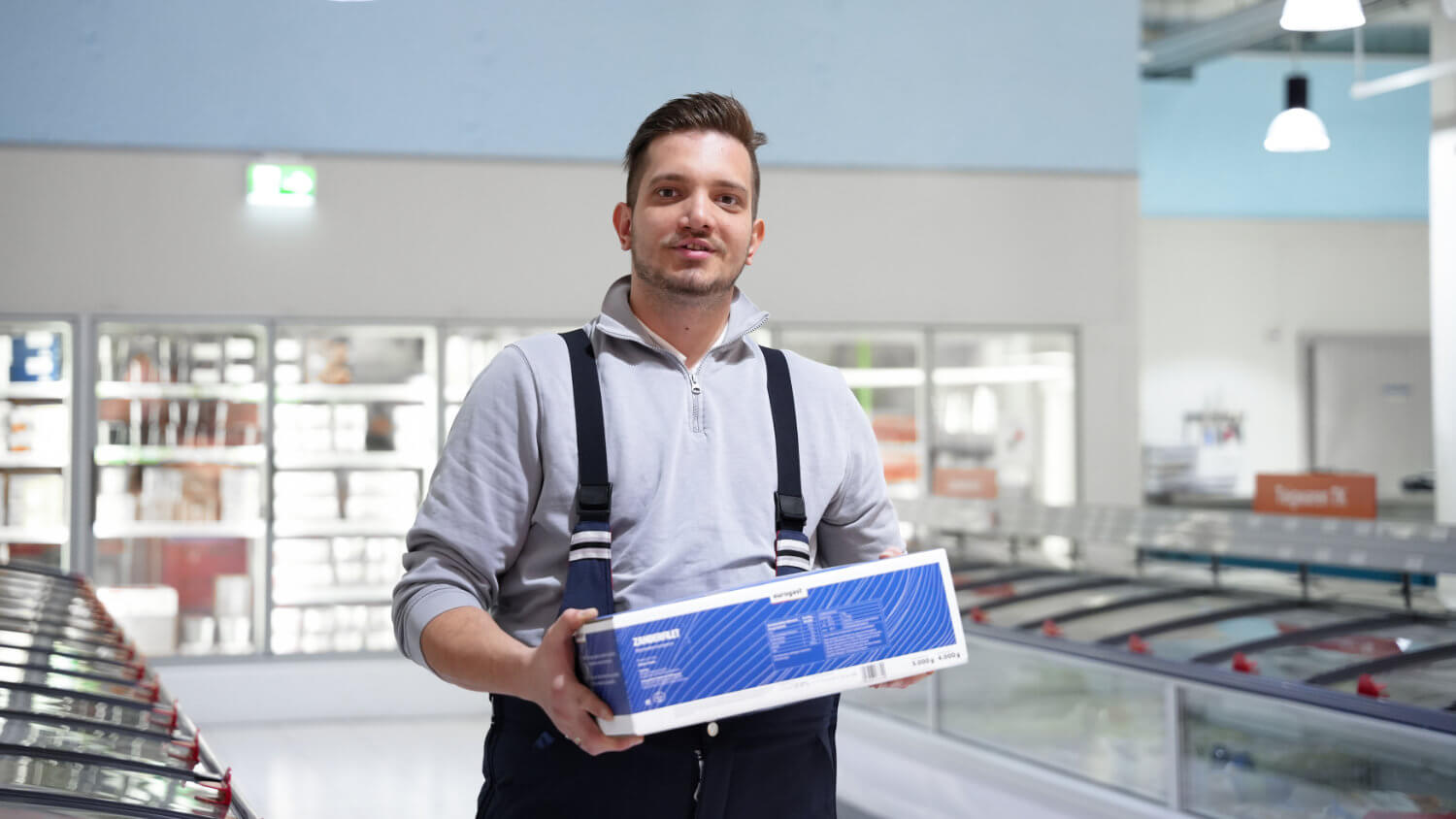 Ich habe gerade den Staplerschein gemacht und werde bald in der Kommission arbeiten. Unsere Firma unterstützt mich auf meinem Weg und übernimmt für mich die Ausbildungskosten.