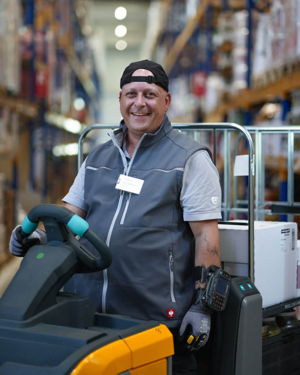 Die Rollcontainer können wir bei den meisten Kunden direkt abstellen und müssen die Ware nicht wie bei anderen Firmen verräumen. Wir sind ein großartiges Team und unterstützen uns gegenseitig.